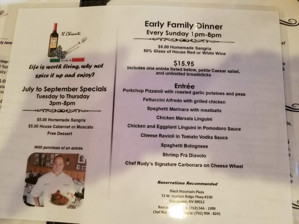 Welcome to Il Chianti Italian, a hidden treasure nestled in the heart of Henderson, NV. This charming Italian restaurant, located at 72 W Horizon Ridge Pkwy Ste 100, invites you to indulge in a culinary journey that celebrates the rich flavors of Italy.